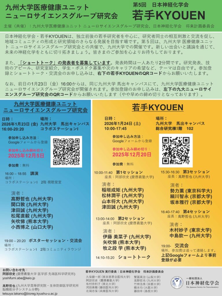 共催:九州大学 医療健康ユニット ニューロサイエンスグループ研究会