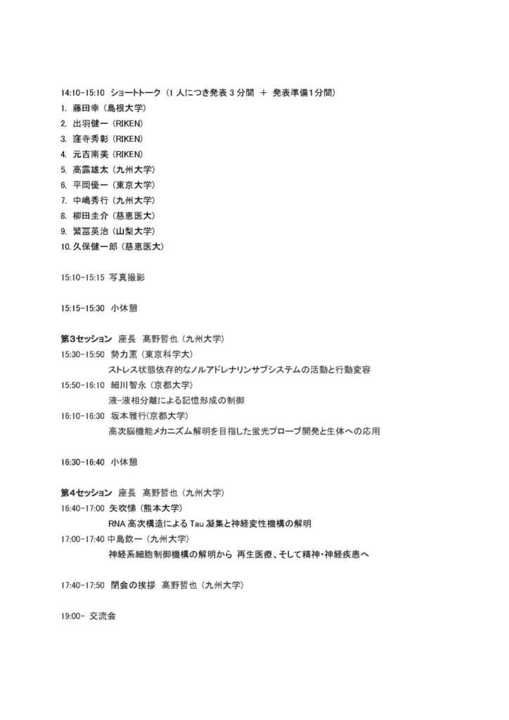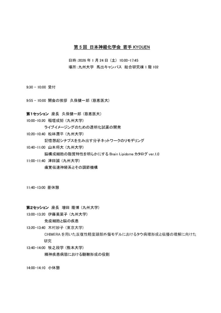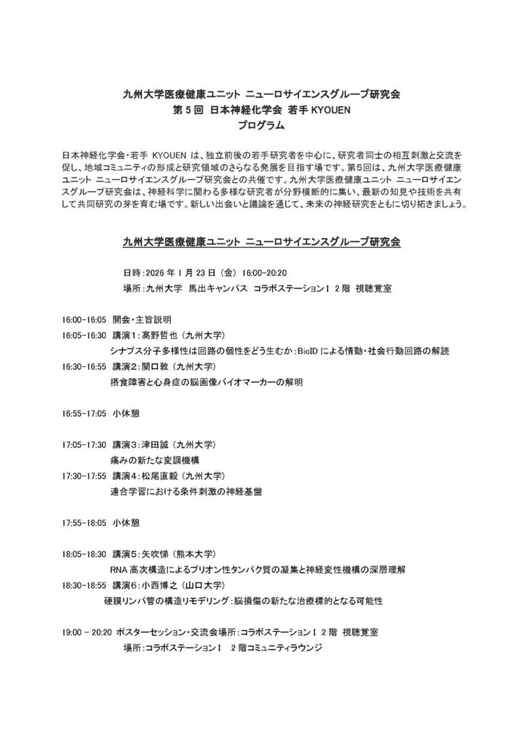 共催:九州大学 医療健康ユニット ニューロサイエンスグループ研究会