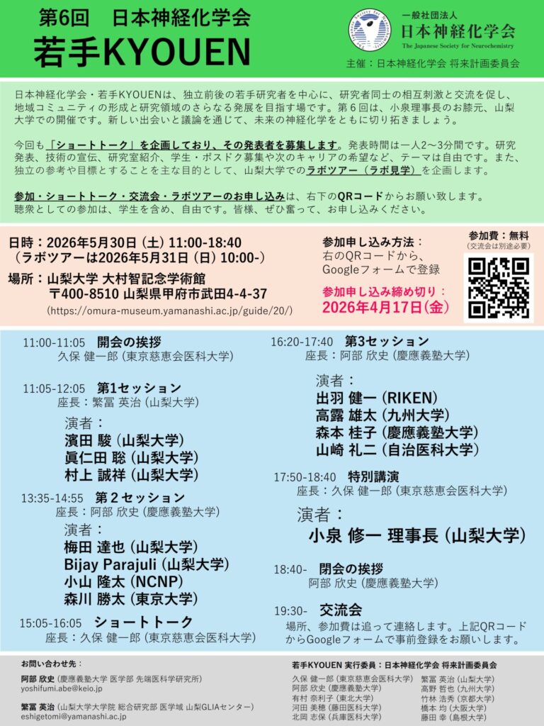 第6回(2026年)若手KYOUENを以下のとおり開催いたします。