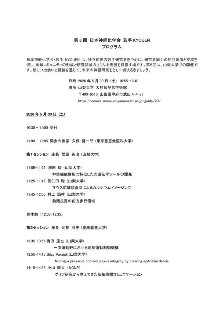 第6回(2026年)若手KYOUENのプログラムは以下の通りです。